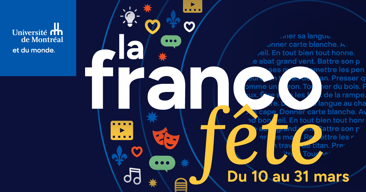 Celle-ci s’inscrit dans le Mois de la Francophonie : chaque année au mois de mars, la richesse et la vitalité de la francophonie sont célébrées dans le monde entier. Découvrez un riche calendrier d’activités variées sur le campus dans différents lieux de Montréal et en ligne.